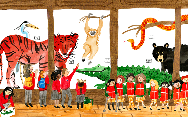 Ella Strickland de Souza is an illustrator and visual communicator working primarily with hand-drawn techniques. She specialises in picture books and editorial illustration and also works as a live artist at events. She currently lives in East London with her rescue lurcher Margot.