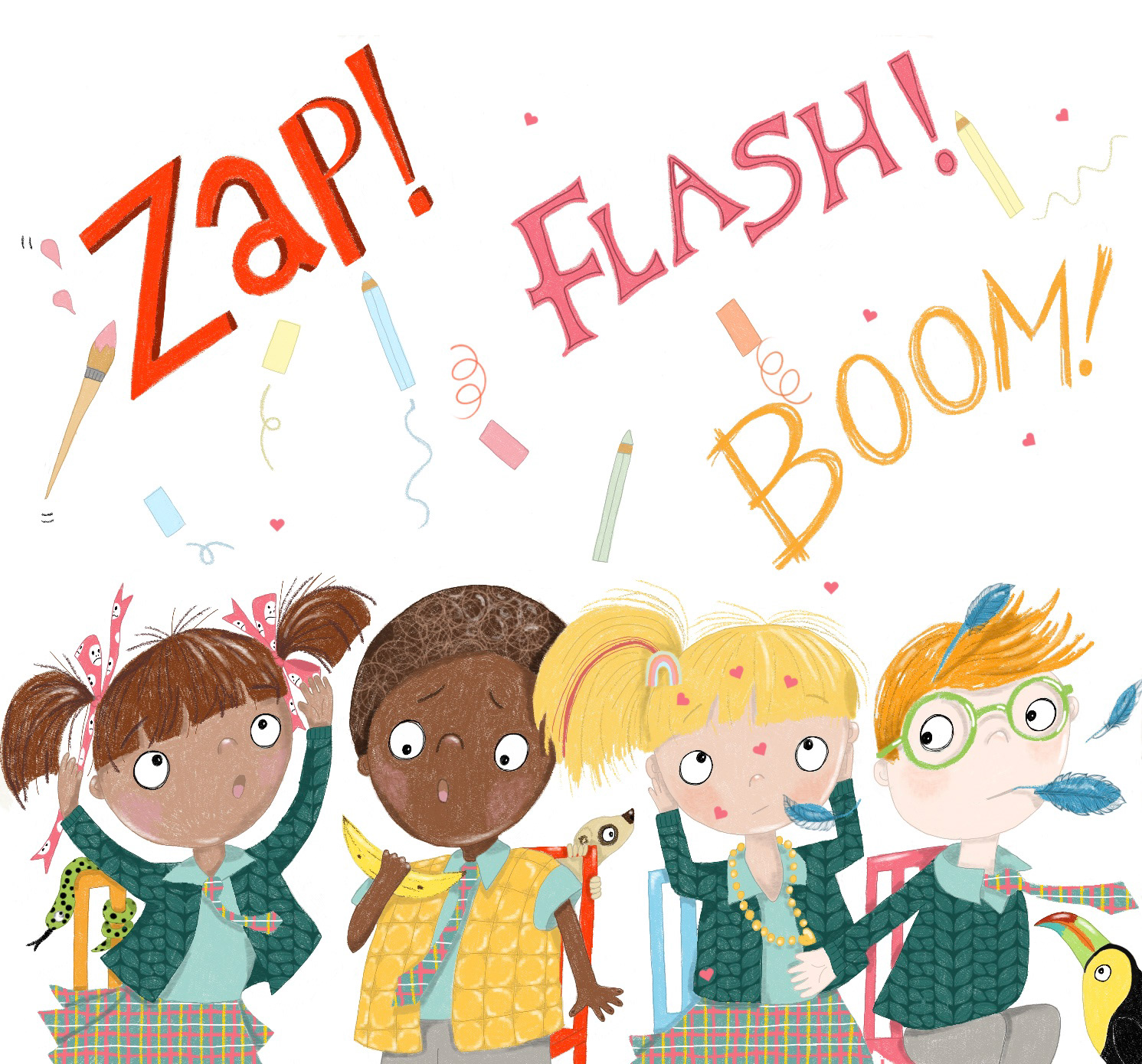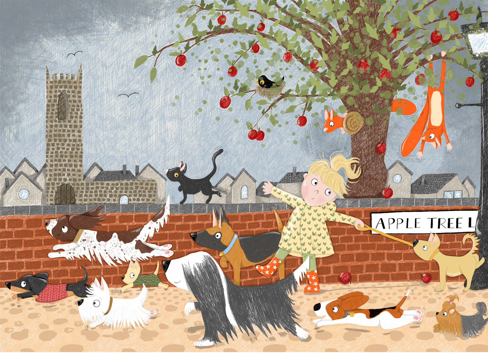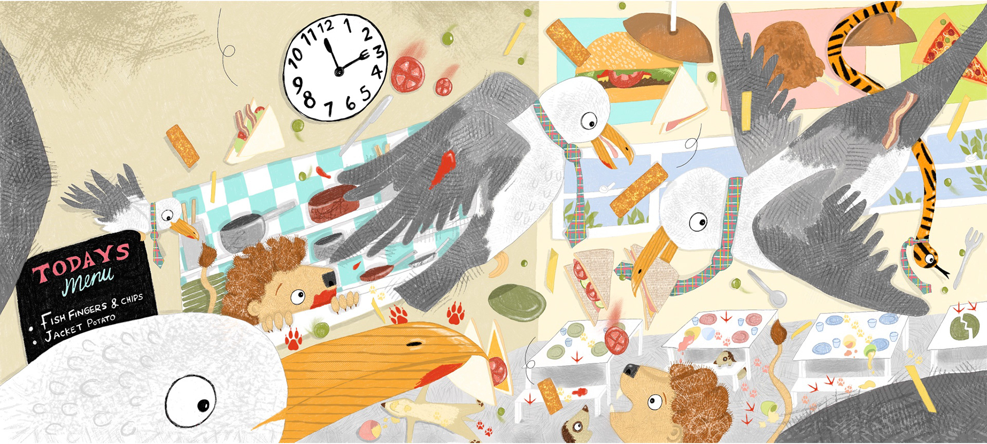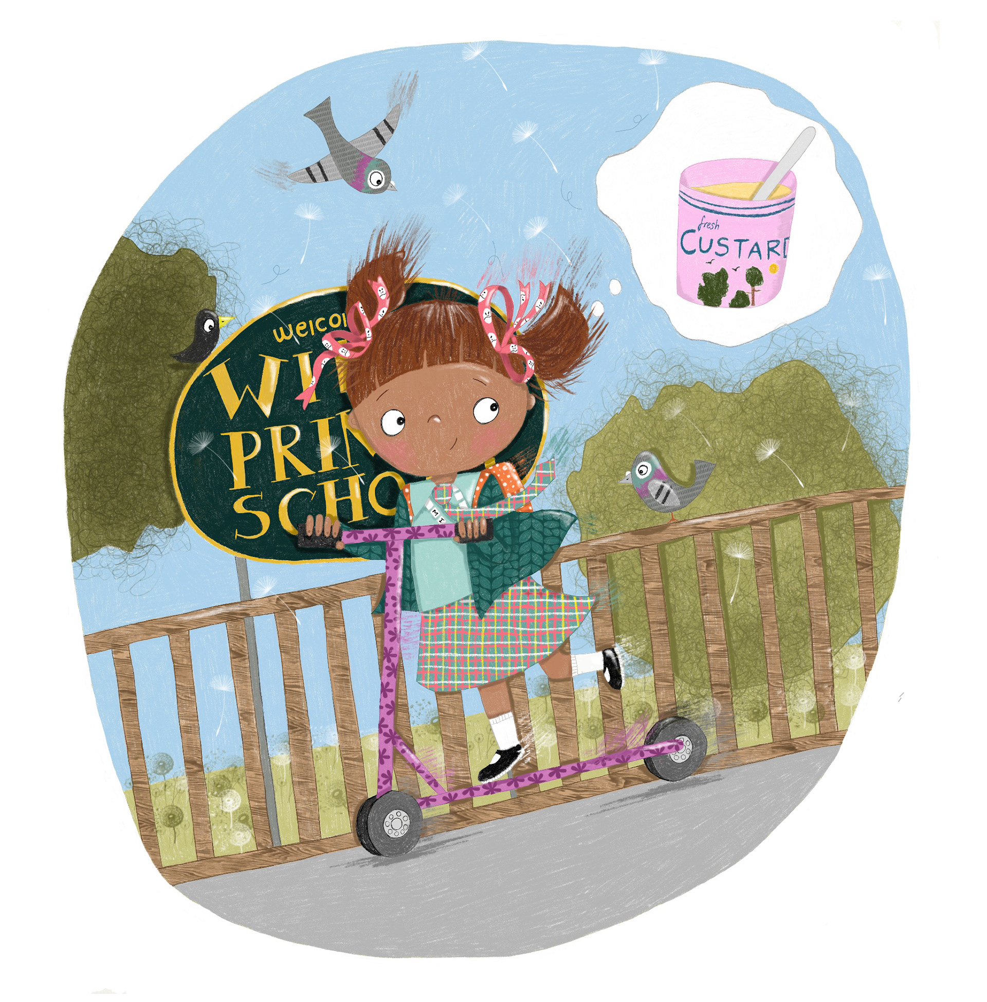 Jo Sinclair is a UK-based illustrator with a background in art, fashion, and textiles. Her work is bright, bold, and quirky, often centred on humorous, character-driven depictions of animals, especially birds and unusual creatures, exploring the playful relationship between humans and the natural world. Jo begins her process with large-scale pencil drawings before refining them digitally, layering textured colour and detail.